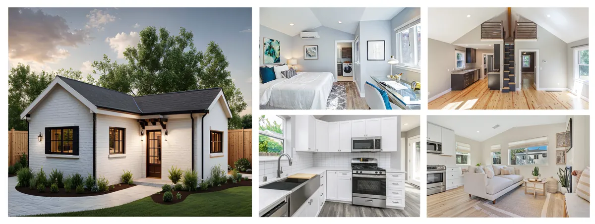 Detached ADUs are the most popular options for ADUs right now as they give you the most privacy and can look the best on your lot. These are ADUs that are completely detached from your main home and can be up to 1,200 sq.ft depending on your location and the space you have available. We have several standard floorplans and designs for detached ADUs that you can use as well as fully custom options!